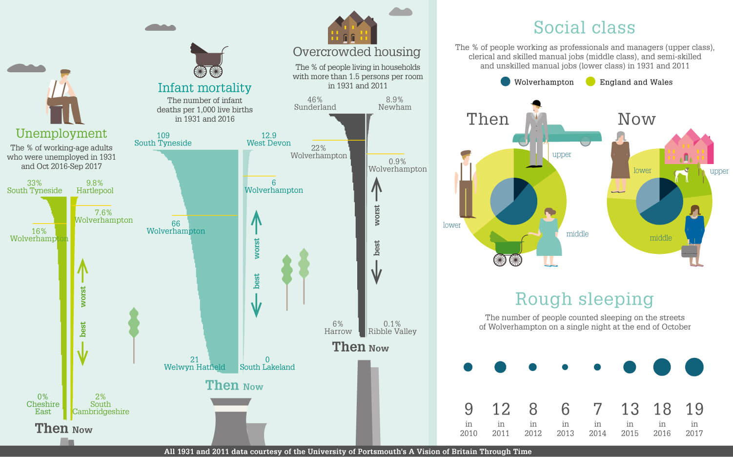 The air is cleaner today than in Orwell’s time, but still responsible for 155 excess deaths in Walsall and 139 in Wolverhampton last year, according to Public Health England.